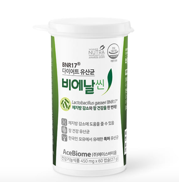 - 비에날씬은 유산균 입니다. 락토바실러스 가세리 BNR17이 비에날씬 유산균의 정식 명칭입니다. 비에날씬은 식약처로부터 체지방 감소 기능성을 인정받은 유산균입니다.체지방의 감소와, 장 건강에 도움이 된다고 알려져 있습니다.